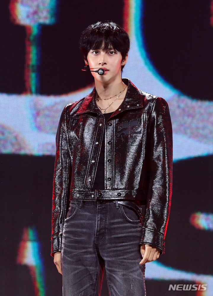 [서울=뉴시스] 김혜진 기자 = 그룹 라이즈(RIIZE) 원빈이 17일 오후 서울 용산구 블루스퀘어 마스터카드홀에서 열린 첫 번째 미니앨범 '라이징(RIIZING)' 프레스 프리미어 행사에서 무대를 선보이고 있다.