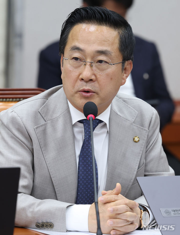 [서울=뉴시스] 조성봉 기자= 박성준 더불어민주당 의원이 18일 오전 서울 여의도 국회에서 열린 국회운영위 첫 전체회의에서 발언하고 있다 2024.06.18. [email protected]