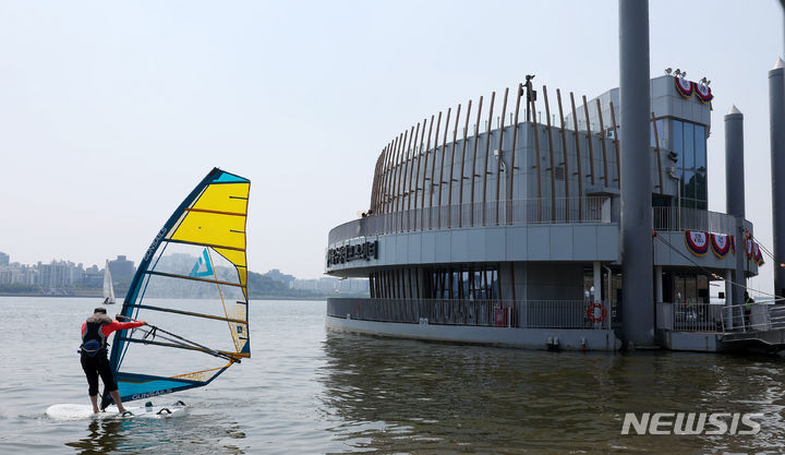 [서울=뉴시스] 김명년 기자 = 19일 오후 서울 마포구 서울수상레포츠센터에서 열린 개관식에서 관계자들이 수상 레포츠를 시연하고 있다. 2024.06.19. [email protected]