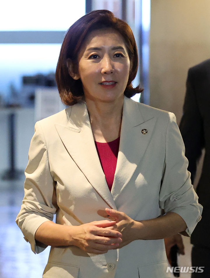 [대구=뉴시스] 이무열 기자 = 국민의힘 당권주자로 거론되는 나경원 국민의힘 의원이 21일 대구 동구 신세계백화점에서 홍준표 대구시장을 예방하기 위해 한 식당으로 입장하고 있다. 2024.06.21. [email protected]