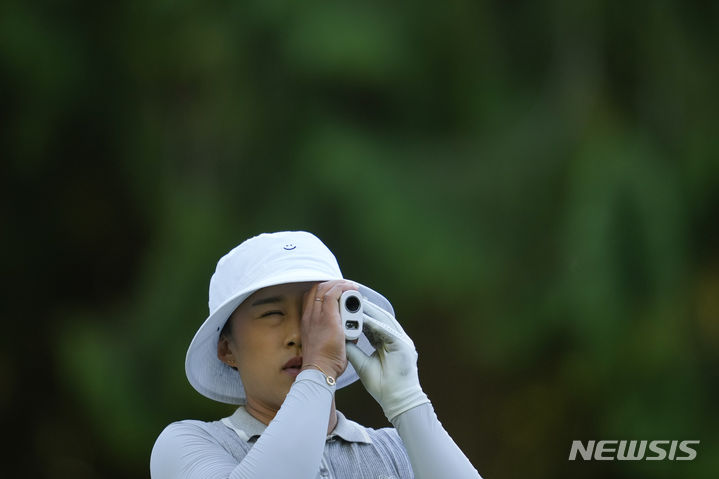 [서매미시=AP/뉴시스] 양희영이 21일(현지시각) 미 워싱턴주 서매미시의 사할리 컨트리클럽에서 개막한 KPMG 위민스 PGA 챔피언십 2라운드 17홀에서 거리를 측정하고 있다. 첫날 공동 4위였던 양희영은 중간 합계 6언더파 138타 공동 선두에 올랐다. 2024.06.22.