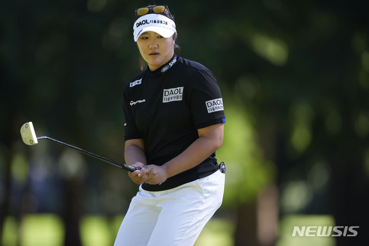 [서매미시=AP/뉴시스] 유해란이 21일(현지시각) 미 워싱턴주 서매미시의 사할리 컨트리클럽에서 개막한 KPMG 위민스 PGA 챔피언십 2라운드 6번 그린에서 퍼트 미스를 범하고 있다. 첫날 공동 54위였던 유해란은 중간 합계 3언더파 141타 공동 6위에 이름을 올렸다. 2024.06.22.