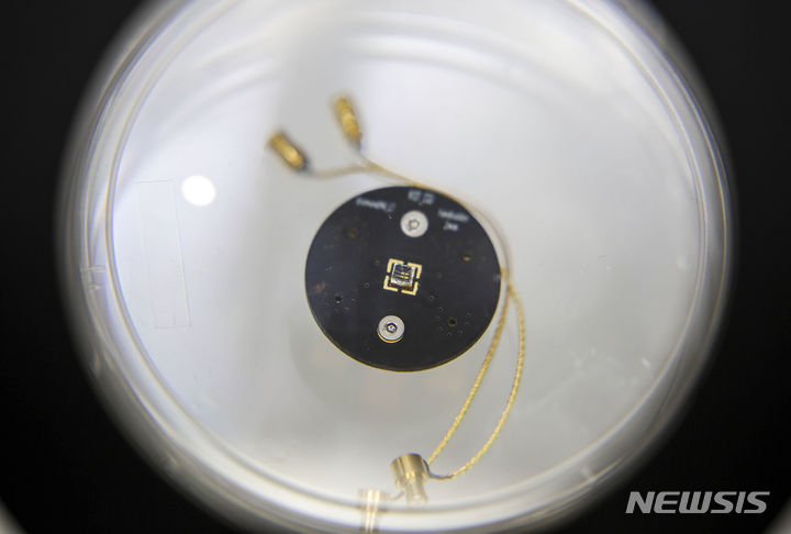 [고양=뉴시스] 정병혁 기자 = 25일 경기 고양시 킨텍스에서 열린 2024 퀀텀코리아에 한국과학기술연구원의 다이아몬드 양자 중계기 소자가 전시되어 있다. 2024.06.25. [email protected]