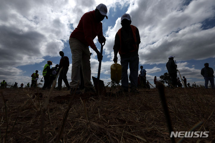 [콘자(케냐)=뉴시스] 추상철 기자 = 25일(현지시간) 아프리카 케냐 콘자시 콘자테크노폴리스 인근에서 열린 '글로벌피스리더십컨퍼런스 아프리카 2024(GPLC Africa 2024)' 일환 나무심기 행사에서 참가자들이 나무를 심고 있다.