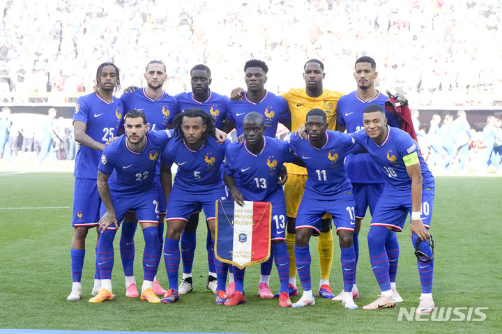 [도르트문트=AP/뉴시스] 프랑스(2위) 선수들이 25일(현지시각) 독일 도르트문트의 BVB 슈타디온에서 열리는 유로 2024 조별리그 D조 3차전 폴란드(26위)와 경기에 앞서 기념 촬영하고 있다. 페널티킥을 주고받아 1-1로 비긴 프랑스는 조 2위로 16강에 진출했다. 2024.06.26.