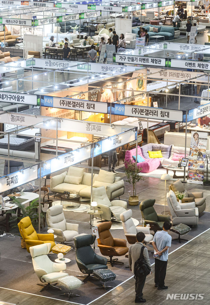 [고양=뉴시스] 황준선 기자 = 27일 경기 고양시 킨텍스에서 개막한 2024 고양가구박람회를 찾은 관람객들이 부스를 둘러보고 있다. 2024.06.27. [email protected]