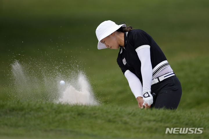 [미들랜드=AP/뉴시스] 양희영이 27일(현지시각) 미 미시간주 미들랜드 컨트리클럽에서 열린 미국여자프로골프(LPGA) 투어 다우 챔피언십 첫날 8번 홀 벙커에서 샷하고 있다. 팀 경기로 열린 이번 대회 1라운드는 포섬 방식으로 진행됐으며 양희영은 제니퍼 송과 팀을 이뤄 3오버파 73타 공동 54위에 이름을 올렸다. 2024.06.28.