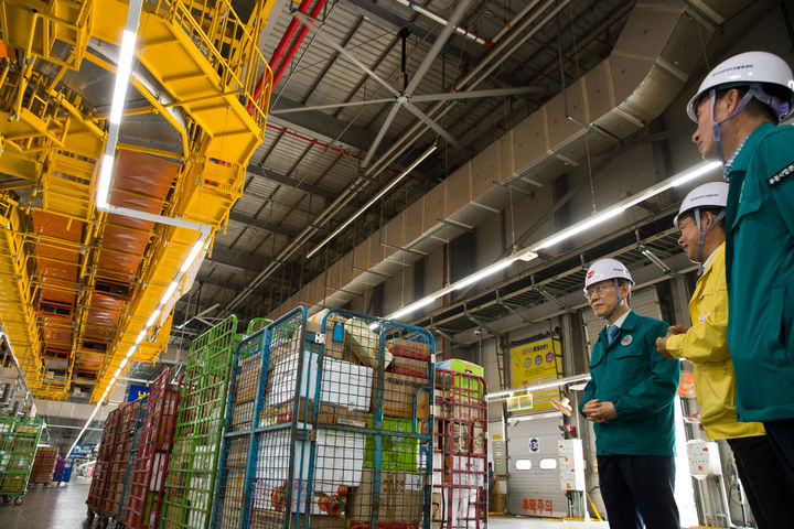 [서울=뉴시스] 김금보 기자 = 이종호 과학기술정보통신부 장관이 1일 오후 대전광역시 동구 중부권광역우편물류센터에서 여름철 안전재난 대비 현황과 중대재해 예방을 위한 안전보건 관리체계를 점검하고 있다. (사진=과학기술정보통신부 제공) 2024.07.01. [email protected] *재판매 및 DB 금지