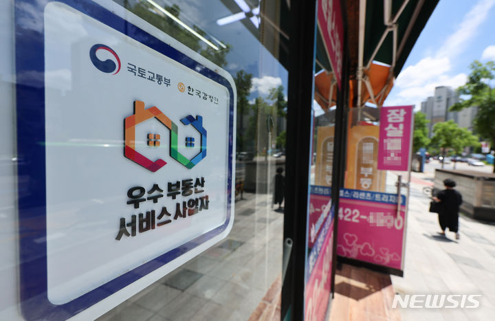 [서울=뉴시스] 김근수 기자 = 10일 서울 시내의 부동산 사무실 앞에 우수 부동산 서비스 사업자 스티커가 붙어 있다.