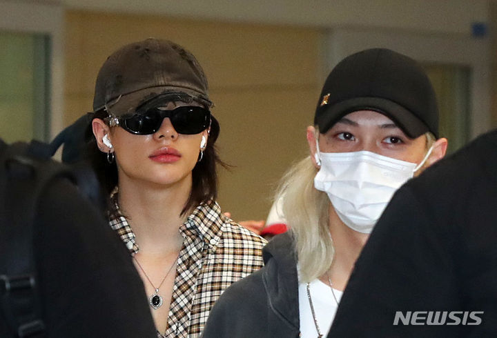 [인천공항=뉴시스] 김혜진 기자 = 그룹 스트레이키즈 현진, 필릭스가 해외 일정을 마치고 16일 오후 인천국제공항을 통해 입국하고 있다. 2024.07.16. [email protected]