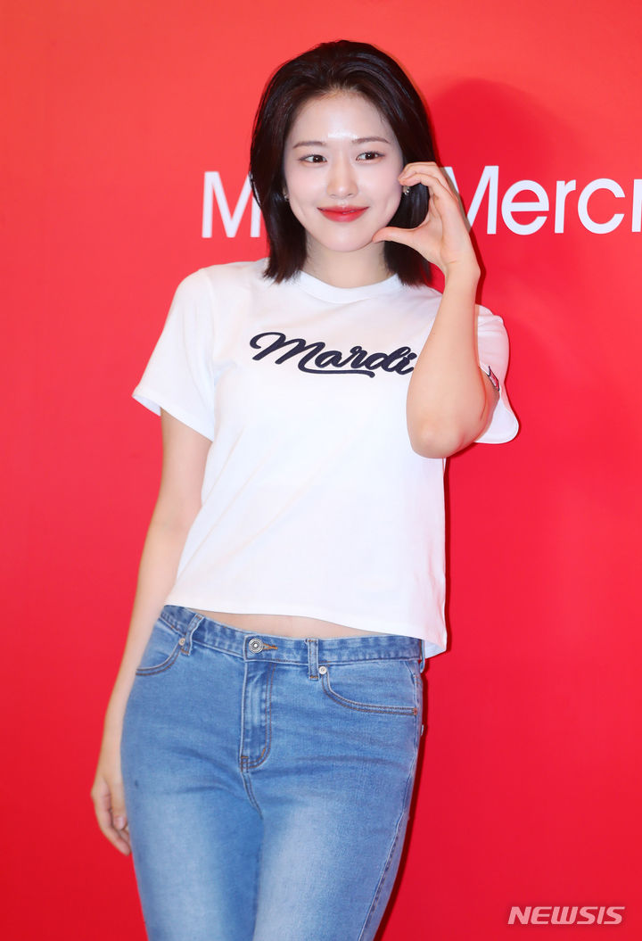 [서울=뉴시스] 김혜진 기자 = 그룹 아이브 안유진이 18일 오전 서울 용산구 누아르 마르디 메크르디에서 열린 데님 콜렉션 팝업스토어 방문 기념 포토행사에서 포즈를 취하고 있다. 2024.07.18. [email protected]