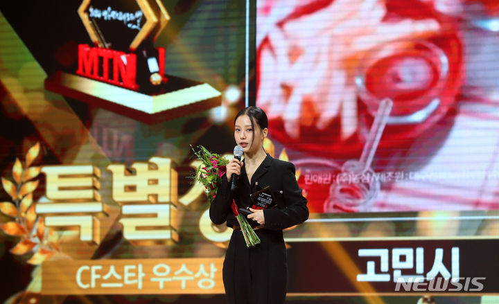 [서울=뉴시스] 김혜진 기자 = 배우 고민시가 18일 오후 서울 중구 크레스트72에서 열린 MTN 주최 2024 방송광고 페스티벌 시상식에서 수상 소감을 말하고 있다. 2024.07.18. [email protected]