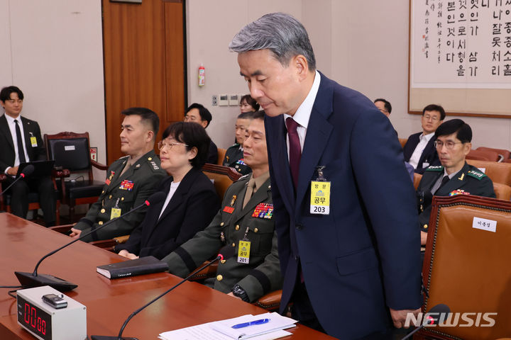 [서울=뉴시스] 조성우 기자 = 이종섭 전 국방부 장관이 19일 서울 여의도 국회에서 열린 제3차 법제사법위원회 윤석열 대통령 탄핵소추안 즉각 발의 요청에 관한 청원 관련 청문회에서 인사하고 있다. 2024.07.19. [email protected]