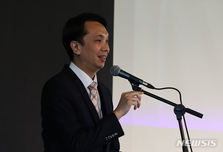 [서울=뉴시스] 김금보 기자 = 마르코 양 알리바바닷컴 코리아 지사장이 22일 서울 중구 더 플라자 호텔에서 열린 '알리바바닷컴의 한국 기업 글로벌 비즈니스 지원 성과 발표 기자간담회'에서 발표를 하고 있다. 2024.07.22. [email protected]
