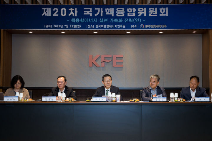 [서울=뉴시스] 김근수 기자 = 이종호(가운데) 과학기술정보통신부 장관이 22일 오후 대전광역시 유성구 한국핵융합에너지연구원에서 열린 '제20차 국가핵융합위원회' 회의에서 모두발언을 하고 있다. (사진= 과학기술정보통신부 제공) 2024.07.22. [email protected] *재판매 및 DB 금지