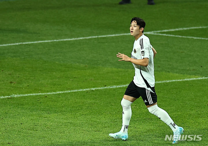 [서울=뉴시스] 김근수 기자 = 팀 K리그 양민혁이 30일 오후 서울 마포구 상암월드컵 경기장에서 열린 쿠팡플레이 시리즈 1차전 팀 K리그 대 토트넘 홋스퍼 경기를 앞두고 열린 오픈 트레이닝에서 훈련하고 있다. 2024.07.30. [email protected]