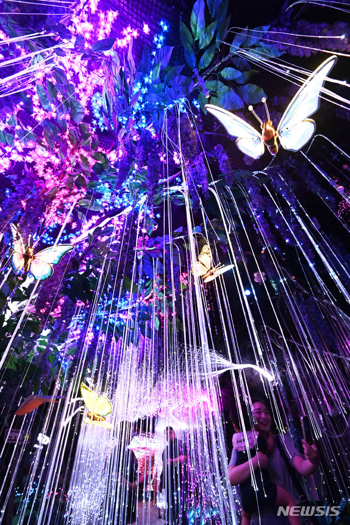 [광명=뉴시스] 김종택 기자 = 전국에 '한증막' 더위가 이어지고 있는 31일 경기도 광명시 광명동굴을 찾은 시민들이 화려한 조명과 시원한 바람이 어우러진 동굴을 관람하며 무더위를 식히고 있다. 2024.07.31. [email protected]