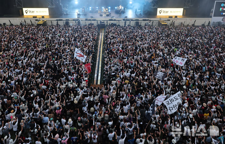 [인천=뉴시스] 전진환 기자 = 2일 오후 인천 연수구 송도달빛축제공원에서 열린 '2024 인천펜타포트 락 페스티벌'에서 밴드 새소년의 공연에 팬들이 열광하고 있다. 2024.08.02. [email protected]