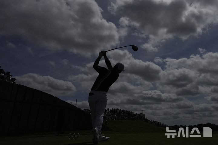 [파리=AP/뉴시스] 김주형이 4일(현지시각) 프랑스 파리 인근 기앙쿠르 르 골프 나쇼날에서 열린 2024 파리올림픽 골프 남자 스트로크 플레이 최종 라운드 3번 홀에서 티샷하고 있다. 김주형은 최종 합계 13언더파 271타로 최종 8위를 기록하며 한국 남자 골프 최초로 올림픽 톱10에 진입했다. 2024.08.05.