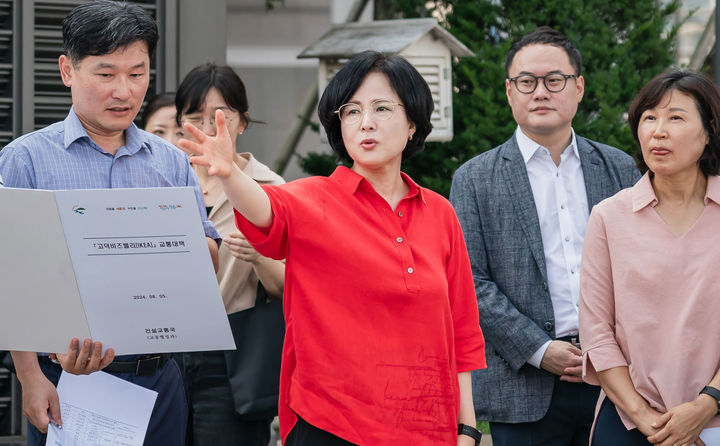 [서울=뉴시스] 추상철 기자 = 이수희 강동구청장이 6일 서울 강동구 고덕비즈밸리 현장을 찾아 교통 현안 점검을 하고 있다. (사진= 강동구 제공) 2024.08.06. [email protected] *재판매 및 DB 금지