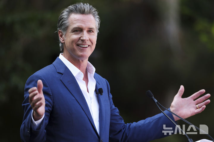 [샌디에이고=AP/뉴시스] 개빈 뉴섬 캘리포니아 주지사가 8일(현지시각) 캘리포니아주 샌디에이고 동물원에서 열린 '판다 리지' 개장식에 참석해 연설하고 있다. 뉴섬 주지사는 이날을 '캘리포니아 판다의 날'로 선포했다. 중국 쓰촨성에서 온 자이안트 판다 수컷 윈촨(5)과 암컷 신바오(4) 한 쌍이 이날 샌디에이고 동물원에서 공개됐다. 2024.08.09.