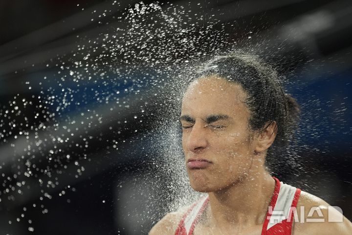 [파리=AP/뉴시스] 이마네 켈리프(알제리)가 9일(현지시각) 프랑스 파리의 롤랑가로스 경기장에서 열린 2024 파리올림픽 복싱 여자 66kg급 양류(중국)와 결승전 준비를 하고 있다. 켈리프는 양류를 5-0 판정승으로 물리치고 알제리에 금메달을 따냈다. 2024.08.10.
