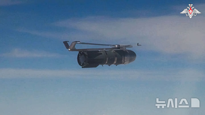[수미=AP/뉴시스] 러시아 국방부가 9일(현지시각) 공개한 영상 사진에 러시아 전폭기가 러시아 쿠르스크 지역과 국경을 맞댄 우크라이나 수미 지역의 우크라이나군 진지를 타격하기 위해 활공폭탄을 투하하고 있다. 2024.08.10.