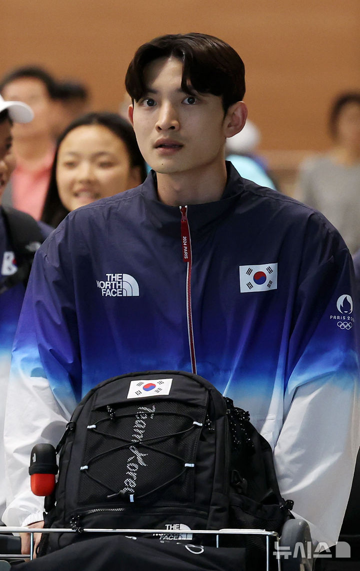 [인천공항=뉴시스] 홍효식 기자 = 2024 파리 올림픽 스포츠클라이밍에 출전한 신은철 선수가 12일 오후 인천국제공항 제2여객터미널을 통해 귀국하고 있다. 2024.08.12. [email protected]