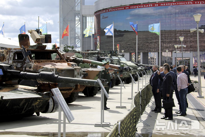 [모스크바=AP/뉴시스] 12일(현지시각) 러시아 국방부가 공개한 사진에 러시아 모스크바에서 '군(Army) 2024 군사기술 포럼'이 열려 인근 패트리엇 공원에서 방문객들이 러시아군이 전투 중 포획한 우크라이나 군용 차량을 살펴보고 있다. 해마다 열리는 이 포럼은 러시아가 무기를 대대적으로 선전하는 방위산업 전시회다. 2024.08.13.