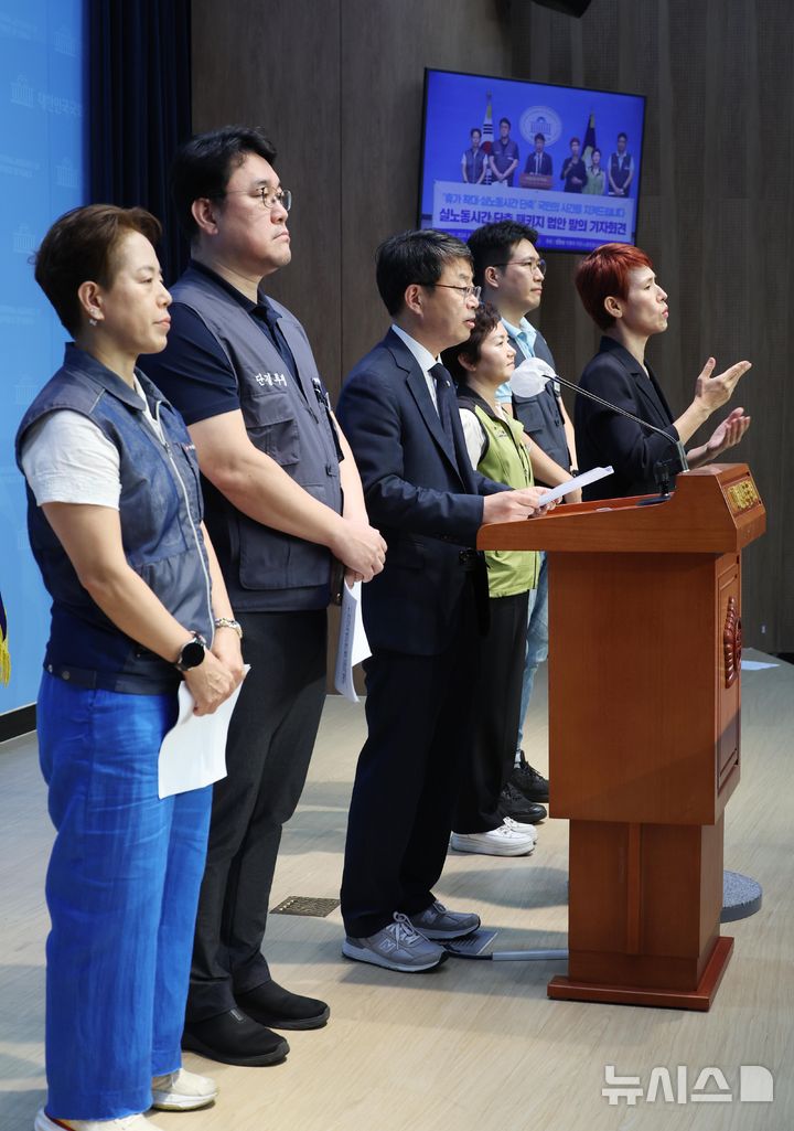 [서울=뉴시스] 조성봉 기자 = 박홍배 더불어민주당 의원이 13일 오전 서울 여의도 국회 소통관에서 열린 '실노동시간 단축 패키지 법안 발의 기자회견' 에서 발언을 하고 있다. 2024.08.13. [email protected]