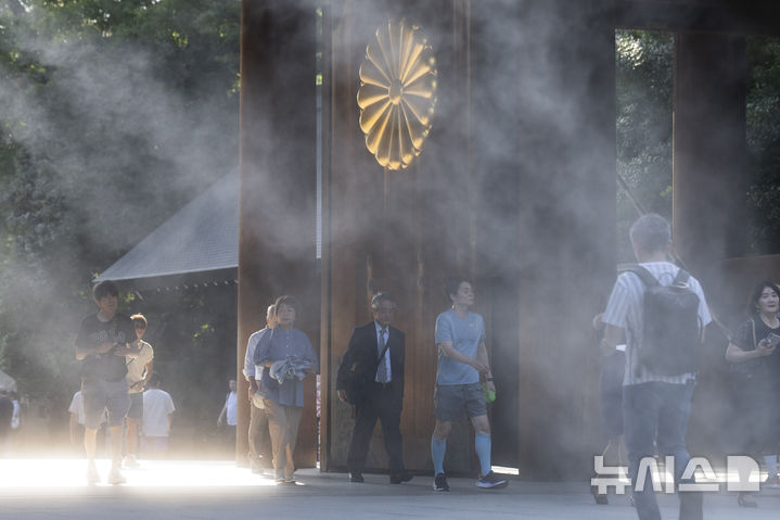 [도쿄=AP/뉴시스] 제2차 세계대전 패전 79주년을 맞은 15일 일본 도쿄에서 시민들이 태평양전쟁 A급 전범이 합사된 야스쿠니신사에 참배하기 위해 본당으로 향하고 있다. 2024.08.15.