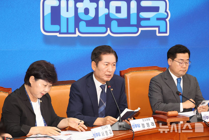 [서울=뉴시스] 권창회 기자 = 정청래 더불어민주당 최고위원이 16일 오전 서울 여의도 국회에서 열린 최고위원회의에서 최고위원으로서 마지막 발언을 하고 있다. 2024.08.16. [email protected]