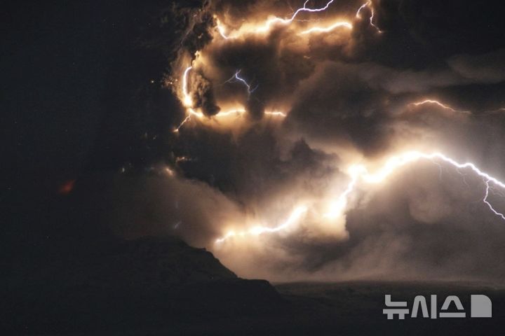 [캄차카반도=AP/뉴시스] 18일(현지시각) 러시아 해안 도시 페트로파블롭스크캄차스키 북쪽 약 450㎞ 떨어진 캄차카반도의 시벨루치 화산이 폭발해 솟구치는 화산재 안에서 번개가 치고 있다. 이날 캄차카반도 앞바다에서 규모 7.0의 지진이 발생한 후 시벨루치 화산이 폭발해 화산재가 약 8㎞ 높이까지 치솟은 것으로 알려졌다. 2024.08.19.