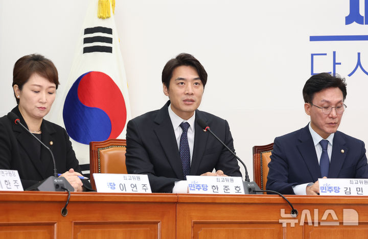 [서울=뉴시스] 고승민 기자 = 한준호 더불어민주당 최고위원이 19일 서울 여의도 국회에서 열린 최고위원회의에서 발언하고 있다. 2024.08.19. [email protected]