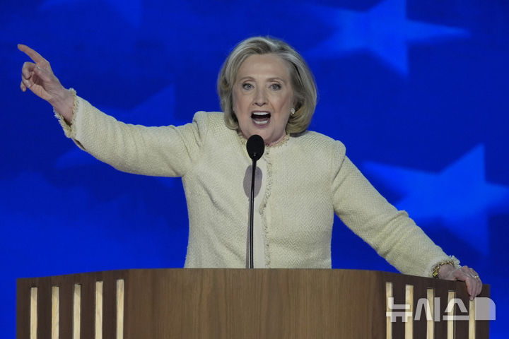 [시카고=AP/뉴시스] 힐러리 클린턴 전 미국 국무장관이 19일(현지시간) 일리노이주 시카고의 유나이티드 센터에서 열린 민주당 전당대회(DNS) 첫날 연설하고 있다. 클린턴 전 장관은 기립박수를 받으며 무대에 올라