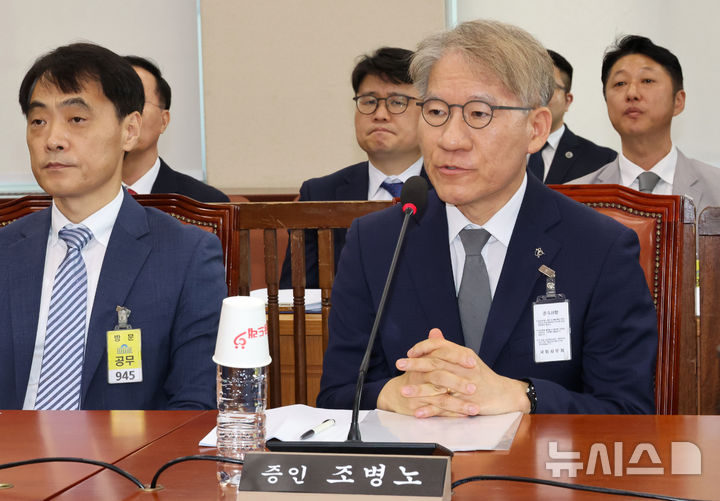 [서울=뉴시스] 조성우 기자 = 조병노(오른쪽) 전북경찰청 자치경찰부장(전 서울경찰청 생활안전부장)이 20일 서울 여의도 국회에서 열린 행정안전위원회의 마약수사 외압 의혹 관련 청문회에서 의원 질의에 답변하고 있다. 2024.08.20. [email protected]