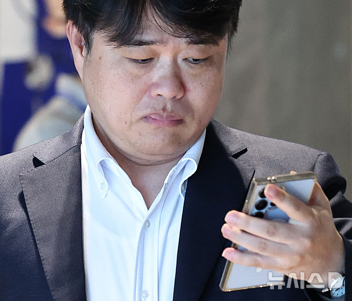 [서울=뉴시스] 김금보 기자 = 임현택 대한의사협회 회장이 22일 서울 용산구 대한의사협회에서 심각한 표정으로 휴대전화를 보며 사옥을 나서고 있다.