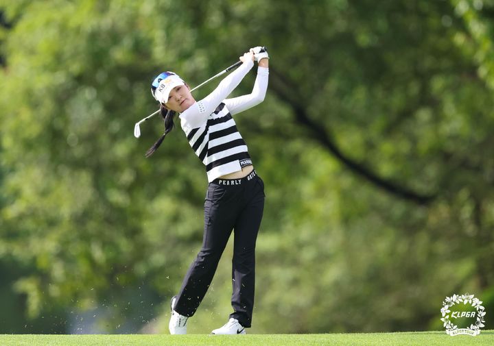 [서울=뉴시스] 22일 강원 춘천 제이드팰리스GC에서 열린 한화 클래식 2024 1라운드 12번홀에서 이예원이 아이언샷을 하고 있다. (사진=KLPGT 제공) 2024.08.22. [email protected] *재판매 및 DB 금지