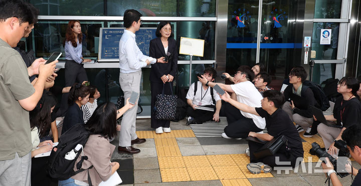 공판 마치고 취재진 앞에 선 김희영 측 변호사