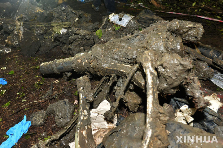 태국 소형 비행기 추락 현장에 흩어진 잔해