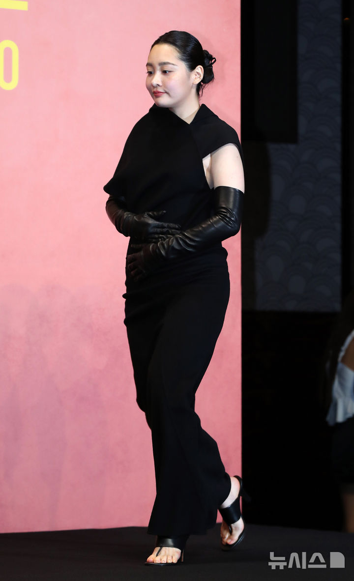 [서울=뉴시스] 김혜진 기자 = 배우 김민하가 23일 오전 서울 강남구 그랜드 인터컨티넨탈 서울 파르나스에서 열린 Apple TV+ 웹드라마 '파친코' 시즌2 제작발표회에 참석하고 있다.