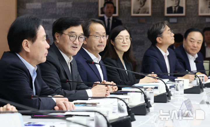 [서울=뉴시스] 정병혁 기자 = 우원식 국회의장이 23일 서울 중구 대한상공회의소에서 열린 사회적 대화를 위한 국회의장-대한상의 간담회에서 인사말을 하고 있다. (공동취재) 2024.08.23. [email protected]