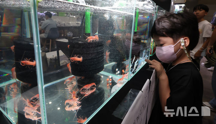 [고양=뉴시스] 전진환 기자 = 23일 오후 경기도 고양시 킨텍스에서 열린 2024 한국관상어산업박람회에서 어린이관람객이 관상어를 감상하고 있다 2024.08.23. [email protected]