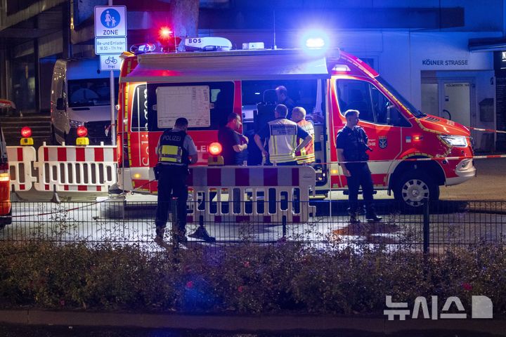 [졸링겐=AP/뉴시스] 23일(현지시각) 독일 서부 노르트라인베스트팔레주 졸링겐의 축제장에서 흉기 난동이 발생해 긴급 구조대와 경찰이 현장에 모여 있다. 현지 경찰은 졸링겐의 프론호프 광장에서 열린 도시 설립 650주년 기념 축제에 한 괴한이 난입해 흉기 난동을 벌여 3명이 숨지고 4명이 다쳤다고 밝혔다. 범인은 도주 중인 것으로 알려졌다. 2024.08.24.