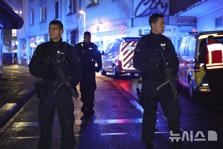 [졸링겐=AP/뉴시스] 23일(현지시각) 독일 서부 노르트라인베스트팔레주 졸링겐의 축제장에서 흉기 난동이 발생해 경찰과 긴급 구조대가 현장에 출동해 있다. 현지 경찰은 졸링겐의 프론호프 광장에서 열린 도시 설립 650주년 기념 축제에 한 괴한이 난입해 흉기 난동을 벌여 3명이 숨지고 4명이 다쳤다고 밝혔다. 범인은 도주 중인 것으로 알려졌다. 2024.08.24.