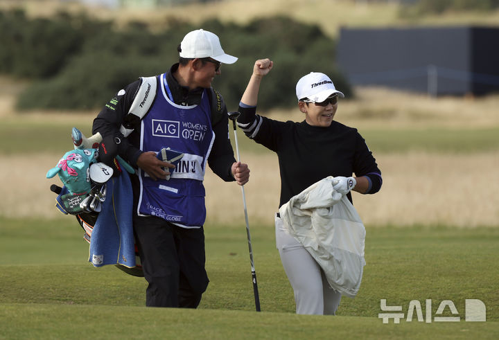 [스코틀랜드=AP/뉴시스] 신지애가 24일(현지시각) 영국 스코틀랜드의 세인트앤드루스 올드 코스에서 열린 미국여자프로골프(LPGA) 투어 AIG 여자오픈 3라운드 17번 페어웨이에서 갤러리에 화답하고 있다. 신지애는 중간 합계 7언더파 209타로 단독 선두에 올랐다. 2024.08.25.