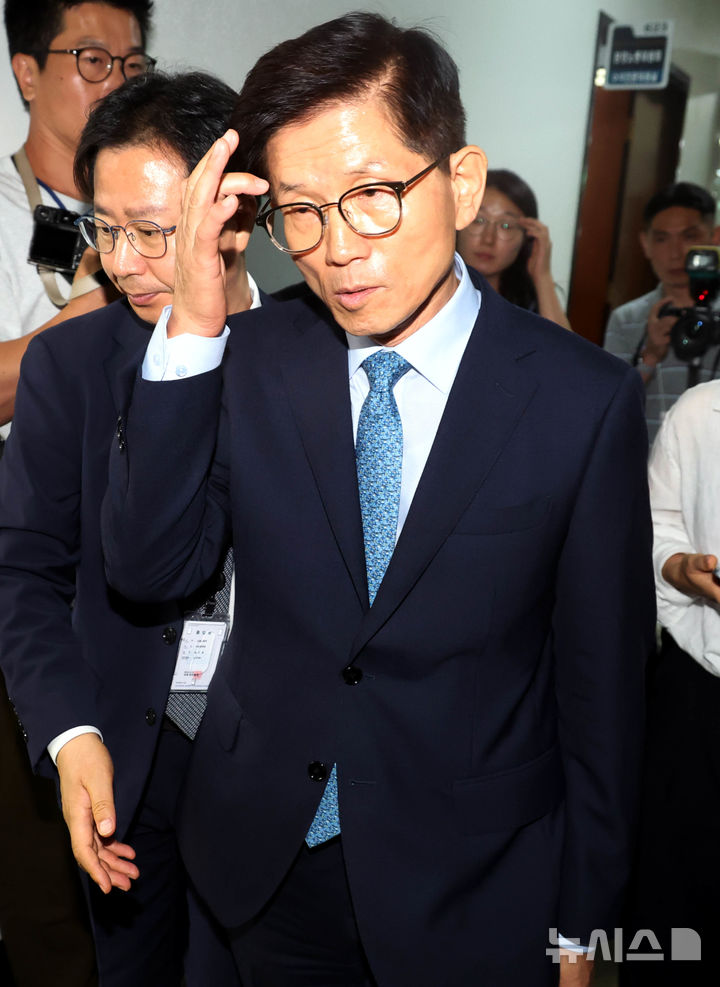 [서울=뉴시스] 조성봉 기자 = 김문수 고용노동부 장관 후보자가 26일 서울 여의도 국회에서 열린 제2차 환경노동위원회 국무위원 후보자 인사청문회가 정회되자 대기 장소로 이동하고 있다. 2024.08.26. [email protected]