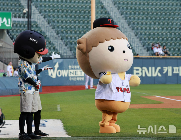 [서울=뉴시스] 고범준 기자 = 27일 서울 송파구 잠실야구장에서 열린 2024 KBO리그 kt wiz와 LG 트윈스의 경기에 앞서 네이버웹툰 '마루는강쥐' 주인공 최마루가 인사를 하고 있다. 2024.08.27. [email protected]