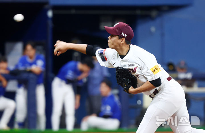 [서울=뉴시스] 전신 기자 = 28일 서울 구로구 고척스카이돔에서 열린 2024 KBO리그 삼성 라이온즈와 키움 히어로즈 경기에서 2회초 키움 김선기가 역투하고 있다. 2024.08.28. [email protected]