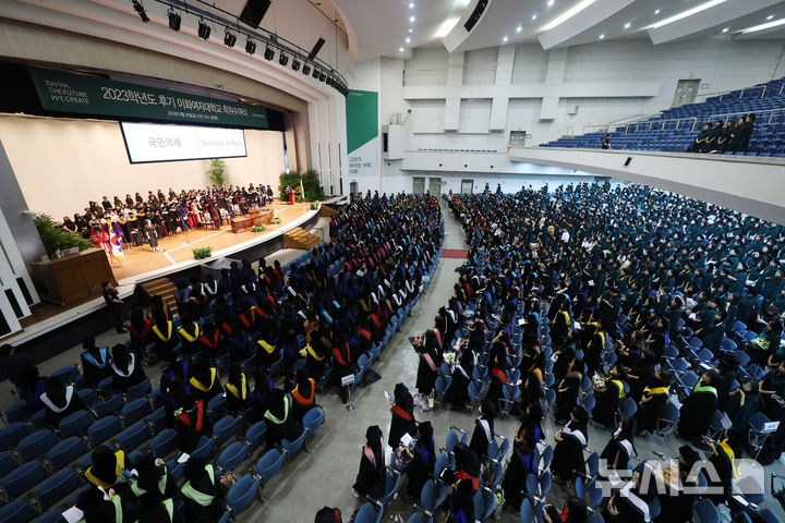 [서울=뉴시스] 김명년 기자 = 30일 오전 서울 서대문구 이화여자대학교에서 2023학년도 후기 학위수여식이 열리고 있다. 2024.08.30. [email protected]